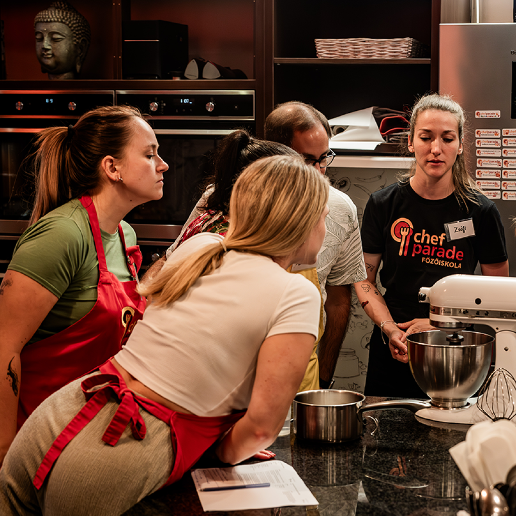 Our Bécsi út venue lies on the border of District II and District III, in the charming neighborhood of Óbuda. It’s our flagship cooking studio — an impressive 440 square meters across two floors, with four distinct kitchen spaces. This is also home to our central offices, where new ideas are born, recipes are developed, and test cooking brings innovation to life.